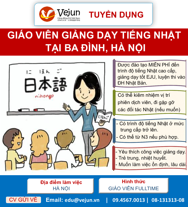 TUYỂN DỤNG GIÁO VIÊN DẠY TIẾNG NHẬT TẠI BA ĐÌNH, HÀ NỘI